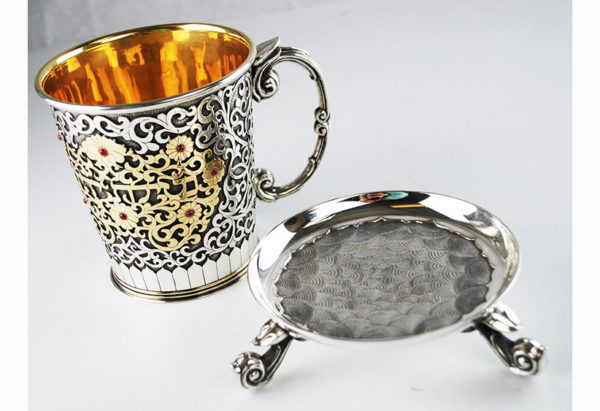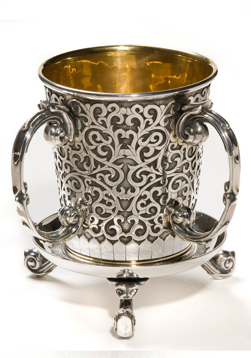 Home / Silver Line / Washing cup Washing cup A stunning silver on silver vessel with elements of gold and ruby. The vessel is regal and elevates the act of washing of the hands before the meal. Rests on an ornate silver pedestal. SKU: 3002 Category: Silver Line YOU MAY ALSO LIKE